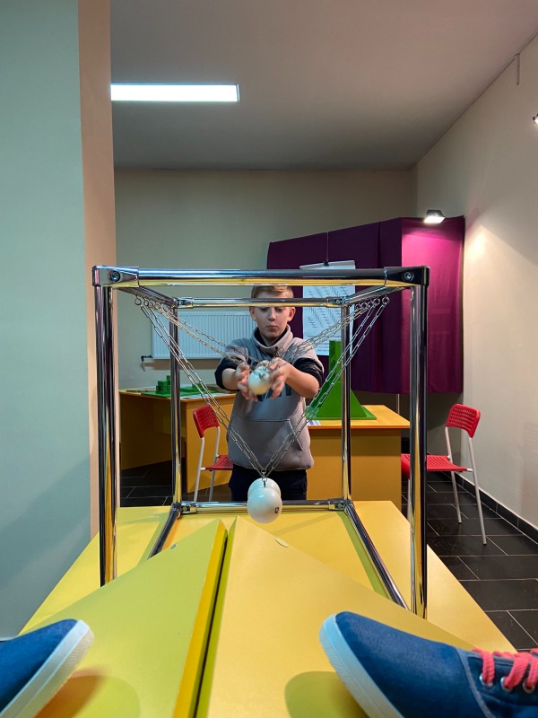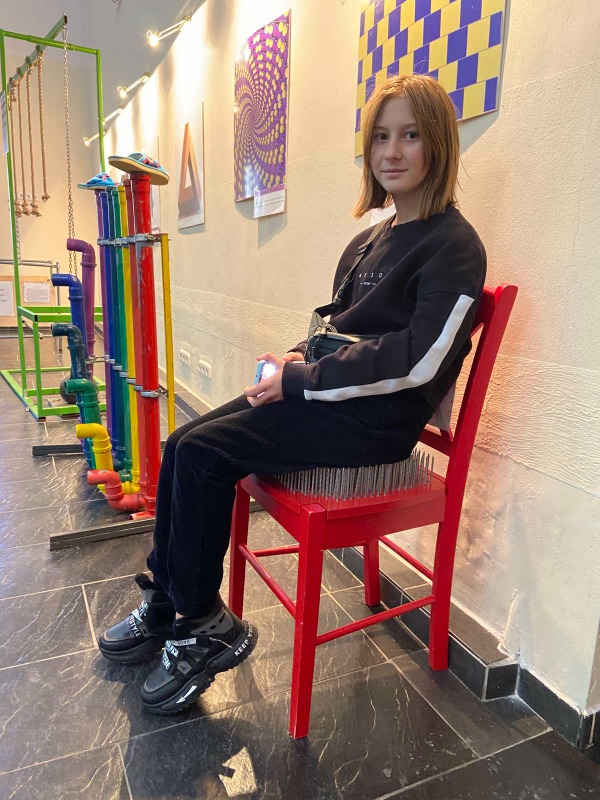 Ребята послушали экскурсию, посмотрели на необычные экспонаты и почувствовали себя в роли ученого, ощутили себя йогом посидев на стуле с гвоздями, поиграли в головоломки и настольные игры. Отличная и интересная выставка для развития сообразительности, внимания и логического мышления.