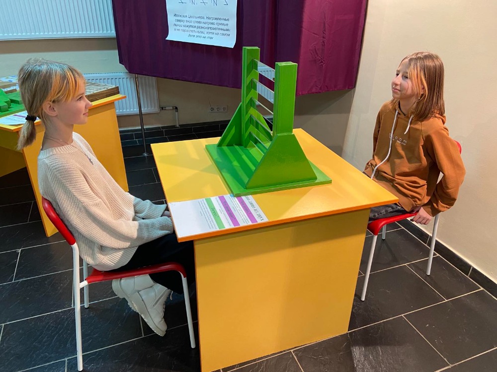 Мы посетили выставку 4 декабря. На выставке были представлены различные изобретения ученых всего мира. Среди них – рычаг Архимеда, колыбель Ньютона, теорема Пифагора, волновой маятник, мост Леонардо да Винчи и все представленные работы можно потрогать руками, не боясь при этом гневных взглядов и возгласов кураторов. Так же есть необычные плакаты с различными визуальными иллюзиями. В общей представлено около 40 экспонатов.
