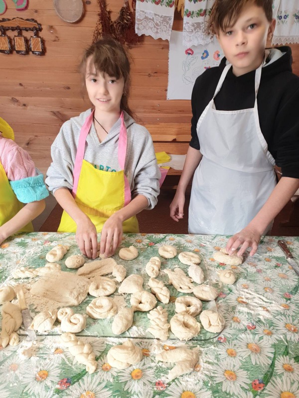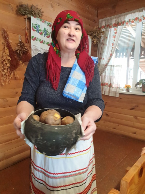 Где нас радушно встретили хозяева музея. Также в подворье есть живность, особенно запомнилась коза Манька. В музее мы окунулись в атмосферу 19 - 20 века, послушали рассказ, как жили наши предки. Подробный рассказ как приходит хлеб на стол. Кроме этого мы учились и сами выпекали хлеб в настоящей печи и потом всё это кушали. А также нам подали тушённую картошечку с мясом из печи и чай с выпечкой. Мы получили незабываемые впечатления. Сколько же у нас есть в Беларуси прекрасных мест,