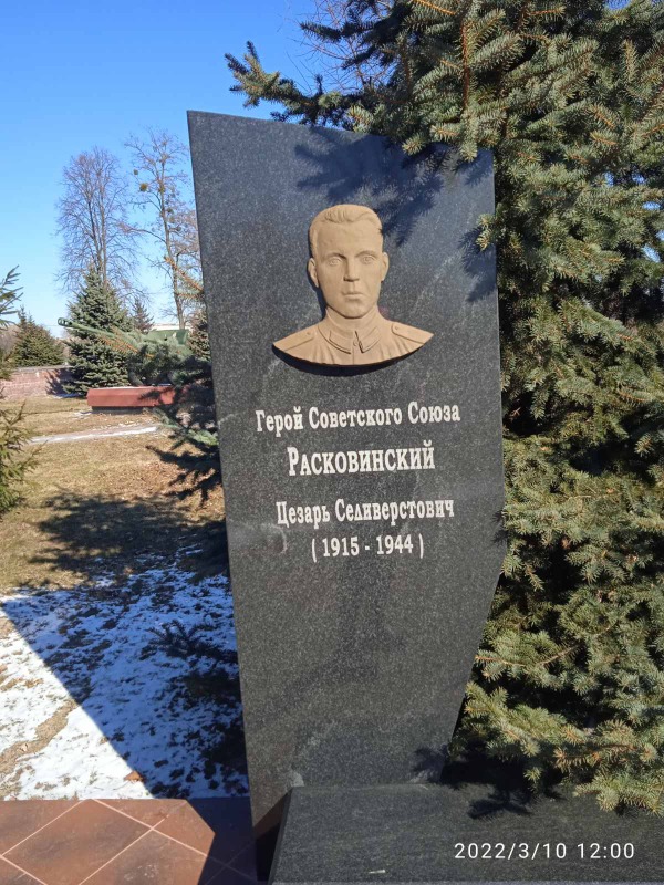 3.Расковинский Цезарь Селиверстович. Советский военнослужащий. Участник Великой Отечественной войны. Герой Советского Союза. Сержант гвардии. Умер 7 декабря 1944 года в 29 лет в Новгородковском районе.