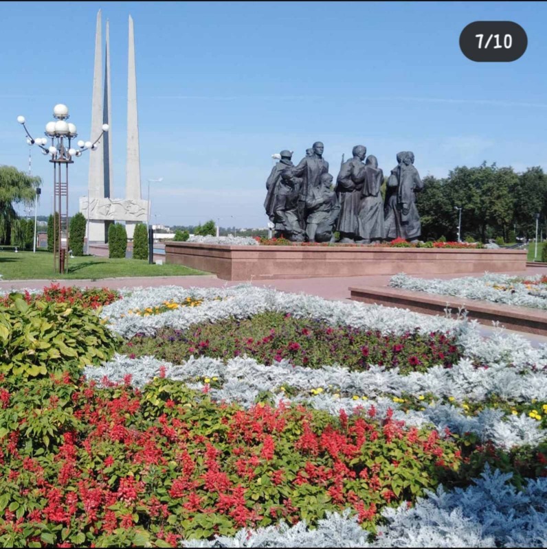 Самая большая площадь в городе и в стране. В длину она простирается на 380 метров, в ширину – на 190 метров. Территория окружена преимущественно застройкой 1960–70 годов, сохранившейся еще с советского времени. В 1974 году здесь установили мемориальный комплекс в честь солдат, партизан и бойцов витебского подполья, храбро сражавшихся с врагом в годы ВОВ. Памятник выполнен в виде трех пронзающих небо штыков. На картах
